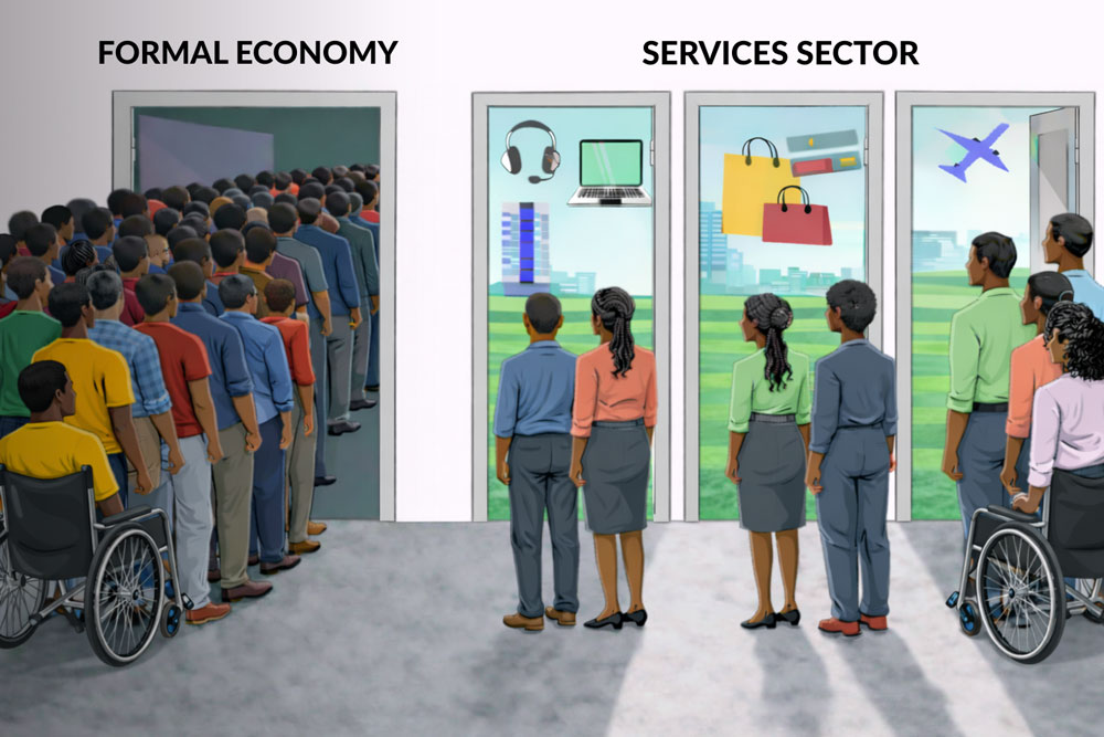 GBS is also in the vanguard of sectors being rapidly reshaped by digitalisation and AI, with job types shifting toward more technology-driven and AI-enabled services. These shifts create disruption but also openings for those with different types of skills and profiles — so we must approach this not as an excuse for backsliding, but an opportunity for even greater inclusion. Looking ahead, the sector can future-proof itself by building training partnerships with higher education institutions, and pooling resources to build up new ‘foundational’ skills like AI and digital literacy, while ensuring general readiness for the world of work. Industrial and sector policies should be complemented by employer incentives that reward training and inclusive hiring — similar to incentives proven effective in GBS. But even as services create the strongest pathways for youth today, these very pathways are being re‑shaped by digitalisation and AI — disrupting tasks, roles and required capabilities.