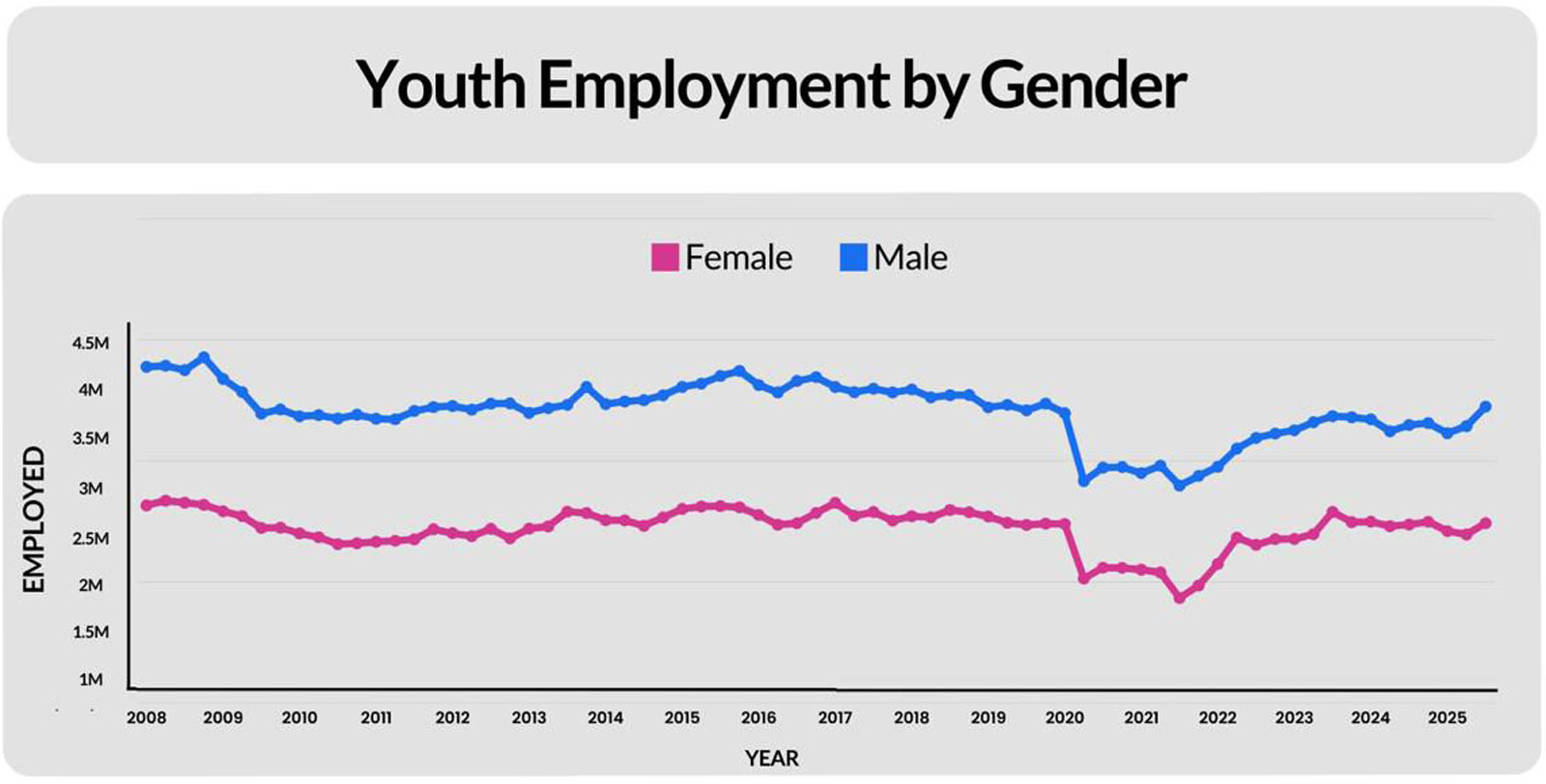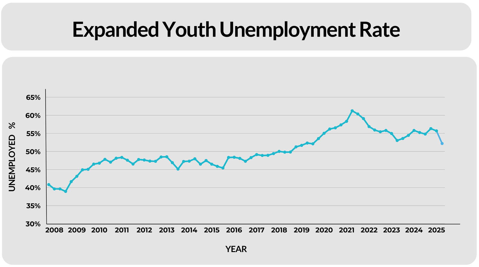 However, although the increase in the number of youth employed is welcome, the proportion of youth who are NEET (not in Employment, Education or Training) remains worrying. More than 40% of those under 35 are NEET, and in the past year, this figure has declined only marginally from 43.2% in Q3 2024 to 42.7% in Q3 2025. Whilst this past quarter shows significant progress for young people, more is required across the economy for earning opportunities to be realised.